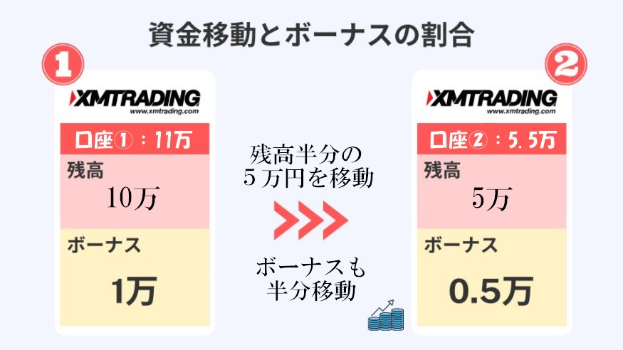 XMで口座間での資金移動した場合、ボーナスも同じ割合分移動します。