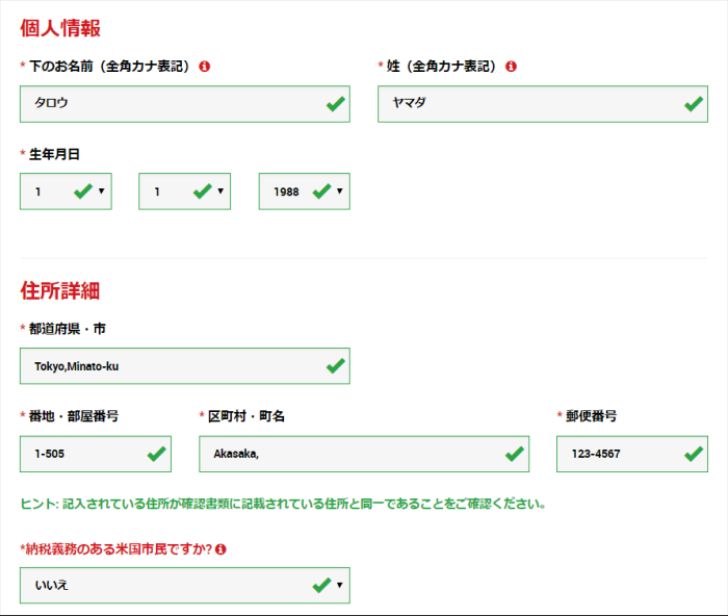 ステップ2へ進んだら、姓名のカナ入力や住所の入力を行います。