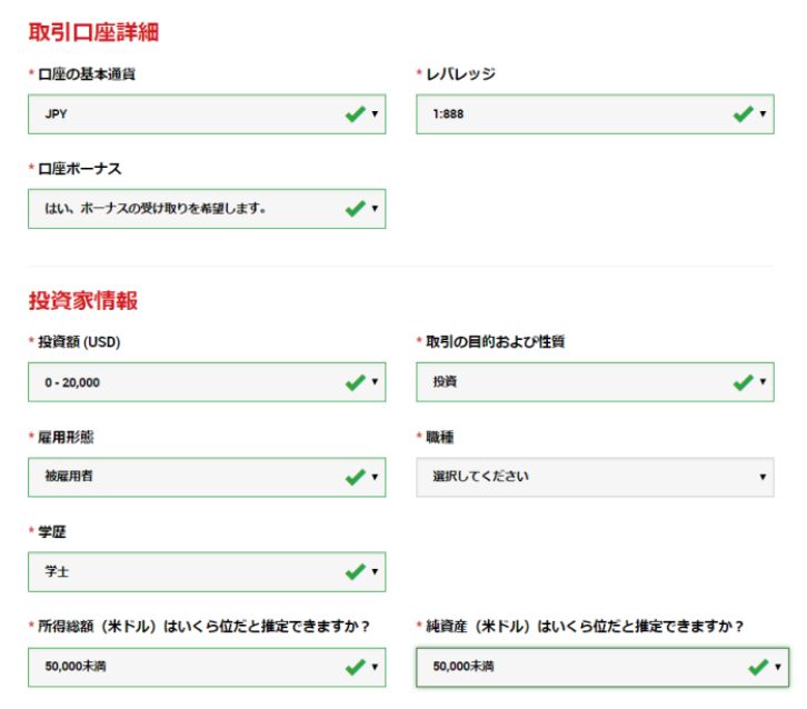 4.投資額(USD):『0:20,000』を選択すれば問題ありません