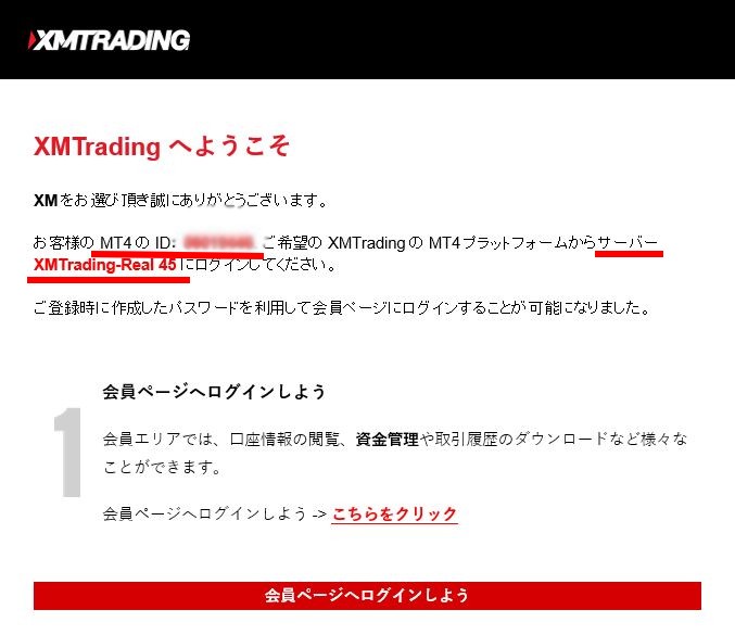 このメールは非常に重要なメールで、MT4の会員ログインに必要な【ID】と【サーバー】情報が記載されていますので、大切に保存してください。