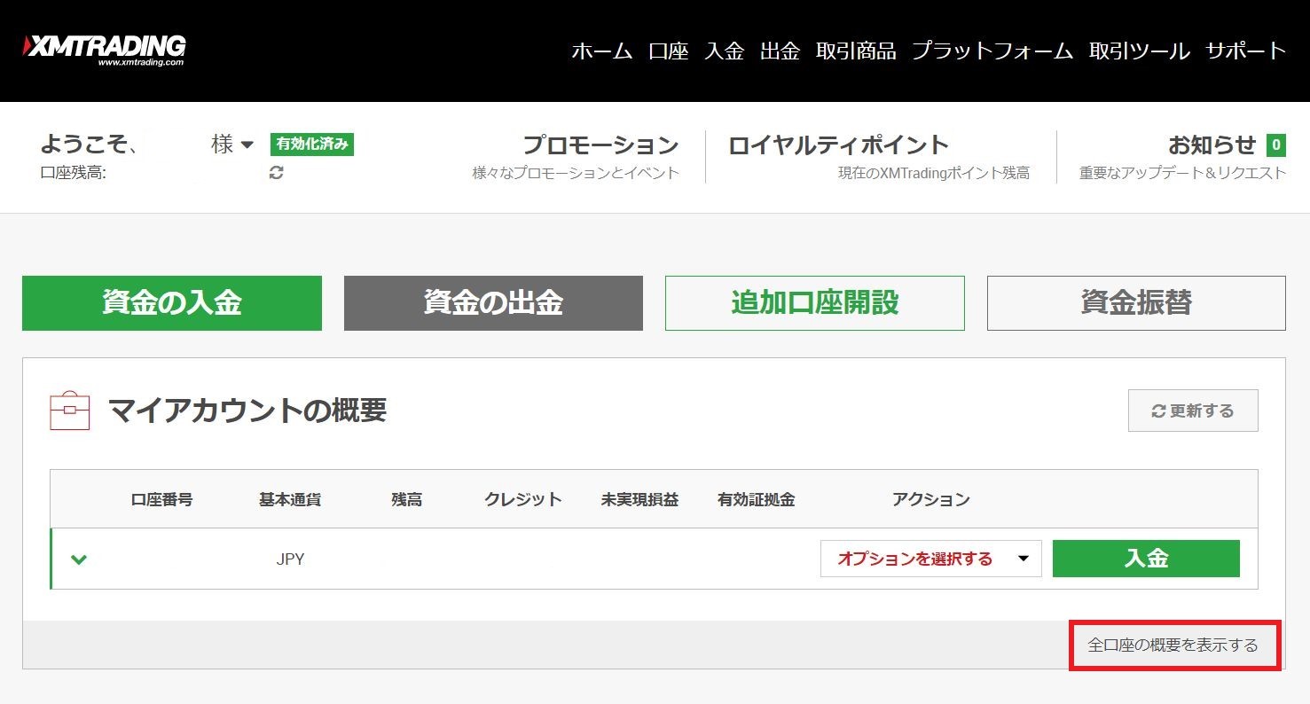 2.マイアカウントの概要の右下に表示されている「全口座の概要を表示する」をクリック