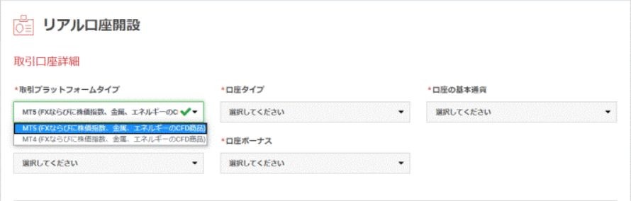口座開設時に「MT4」を選択した場合、プラットフォームは「MT4」しか利用できません。口座開設時に「MT5」を選択した場合、プラットフォームは「MT5」でしか利用できないので覚えておきましょう。