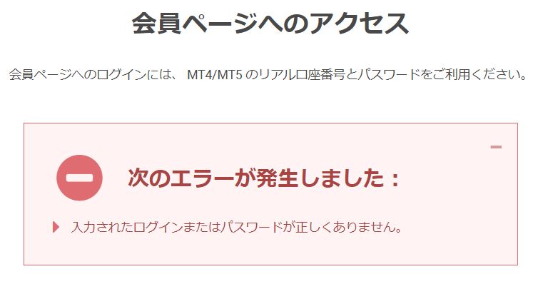 しかし、会員ページへのアクセスやMT4/MT5へのログインが急にできなくなることがあります。
