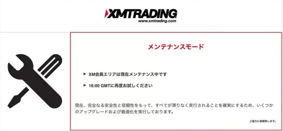 XMがメンテナンスを実施している期間はログインする事ができません。